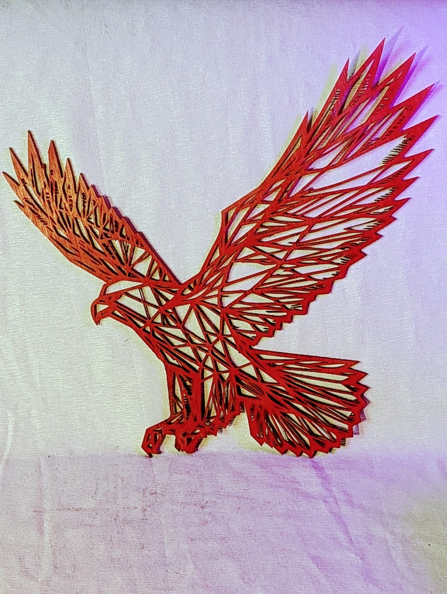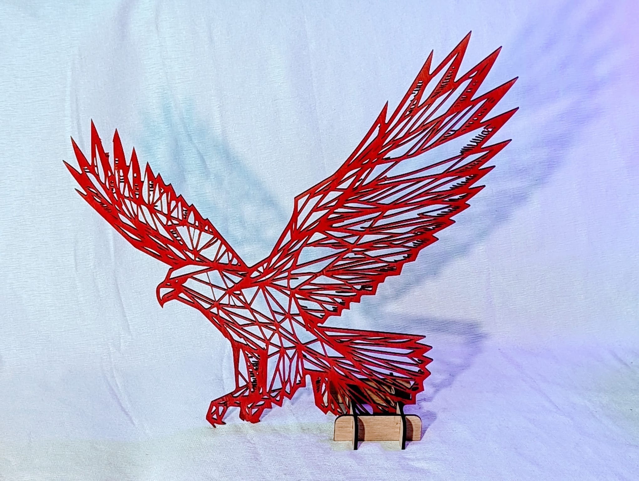 Indrukwekkende adelaar in rode tinten, gesneden uit biologisch multiplex hout.